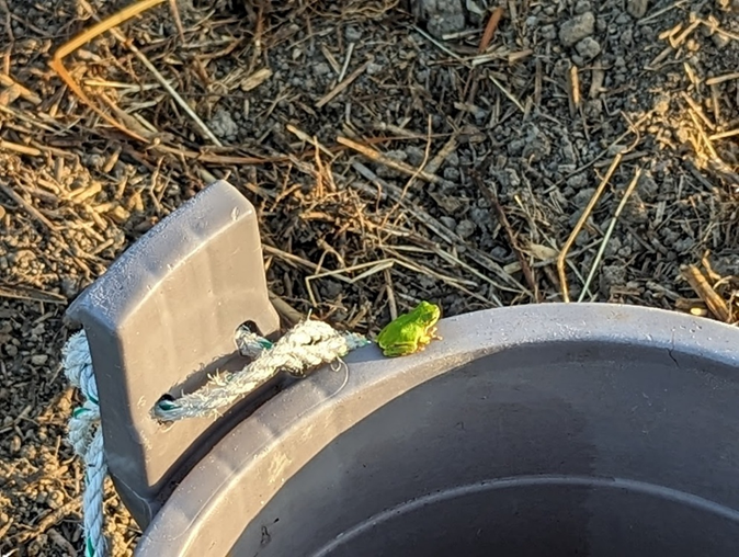 畑に水がなければ、家から水を汲んで、水やりを継続です。